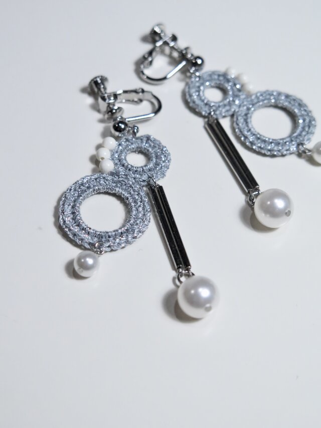 バランス編みモチーフピアスorイヤリング(シルバーラメ)