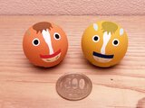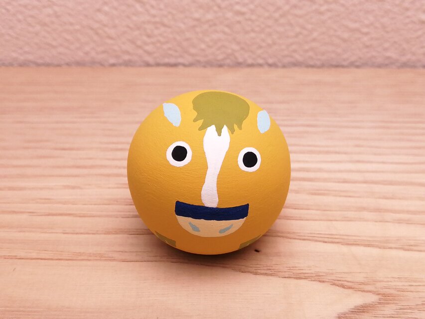 削り出した木にアクリル絵の具で絵付けしてあります。