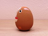 削り出した木にアクリル絵の具で絵付けしてあります。