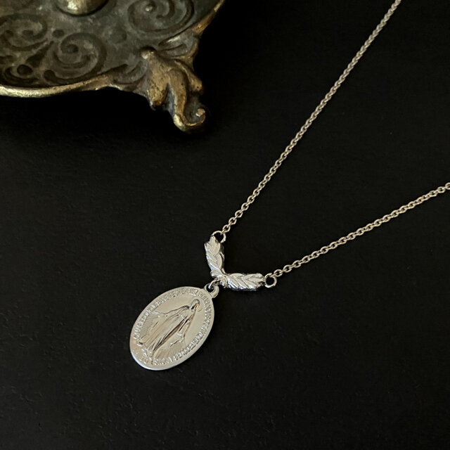 月桂樹の葉に奇跡のメダイをセットした歴史を感じるネックレスです
