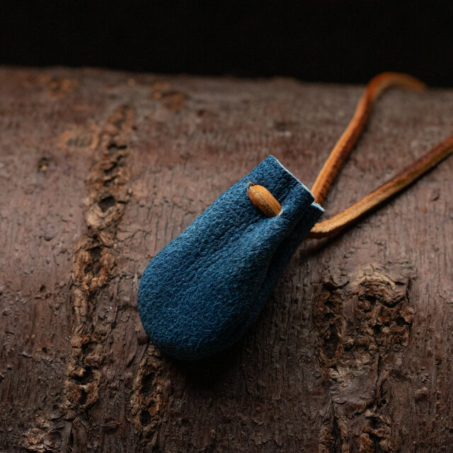 藍染巾着首飾り 鹿革 ネックレス ペンダント 224813