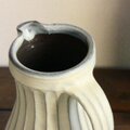 素地に「しのぎ」を施し、化粧泥を掛けてから蘭越釉を掛けて焼成しています。