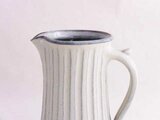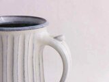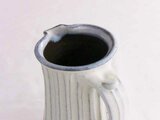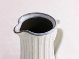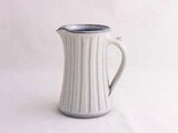素地に「しのぎ」を施し白い化粧泥を掛けてから蘭越釉を掛けて焼成しています。