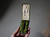 レザーのアンティークケースに入った古いシーリングスタンプを見つけました。