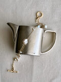 ゴールドのジュエリーやパールのジュエリーとも仲良くなれる一点です。長さ18.5cm。調整を実費で承ります。同じ素材でネックレスも制作しています。