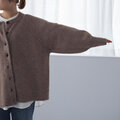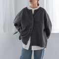 ラグランスリーブ仕様で肩幅を目立たせず、ゆったりとしたサイズ感のニットカーディガン。
