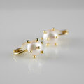 丸みのあるパールに、小さなゴールドの粒々をあしらったデザインは、まるで“花びら”や“星の煌めき”のような可憐さがあり、耳元に優しく華やぎを添えてくれます。