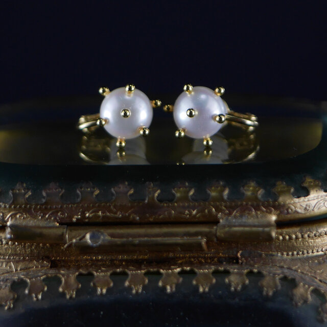柔らかく上品な光沢を湛えた9mmボタンパールを主役にした、ソフトタッチタイプのイヤリングです。