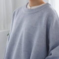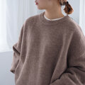 ゆったりとしたシルエット、ボリュームのある生地厚のクルーネックニット。