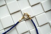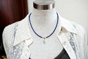 ネックレス部分には直径3mmのそろばんの玉のようなカットのラピスラズリを使っています。