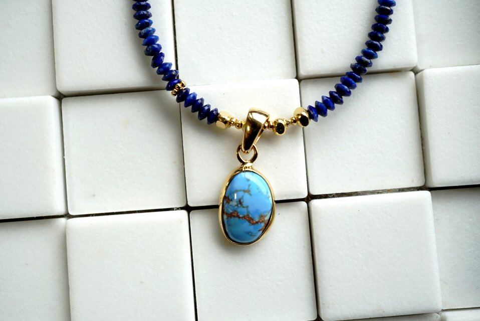 ゴールデンヒルターコイズトップとラピスラズリのネックレス