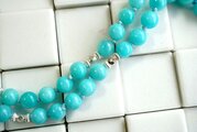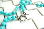 石の間には、ところどころにシルバービーズを組み合わせて挟んでみました。すっきりとした色使いで、さわやかな印象のネックレスに仕上がっているかと思います。