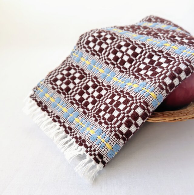 北欧手織り1点物:繊細で柔らかなコットンクロス(ブラウン×バイカラー)