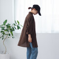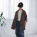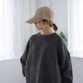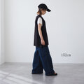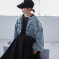 長めで広めのツバが顔まわりをカバーし、縦長の顔もバランスよく小顔に見せてくれます。