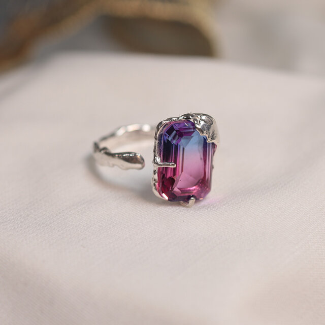 【一点もの】リング(Silver×ガラス ピンク×ブルー)フリーサイズ