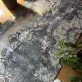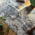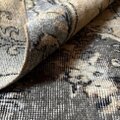 92×180-184グレイカーキ ボタニカル柄 トルコヴィンテージラグ