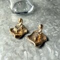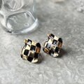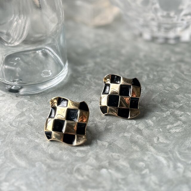 レーシングフラグをイメージできる、市松模様が印象的なゴールドトーンクリップイヤリング。