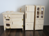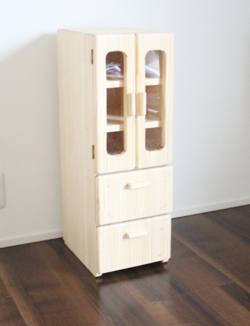 お子様の想像力の向上に少しでもお役立てできるよう、冷蔵庫扉部にはドリンクホルダーや卵ホルダーを手間隙かけて施工し、本物をイメージできる構造に仕上げております。