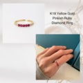 K18イエローゴールドに並んだルビーの鮮やかな色彩が