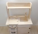 本製品はシンク部分以外は全てパイン材を使用しますので木目の整った天然パイン材の美しさ、高級感、手触りをより一層実感いただける「おままごとキッチン」に改良しております(シンク部分のみホワイトウッド)。