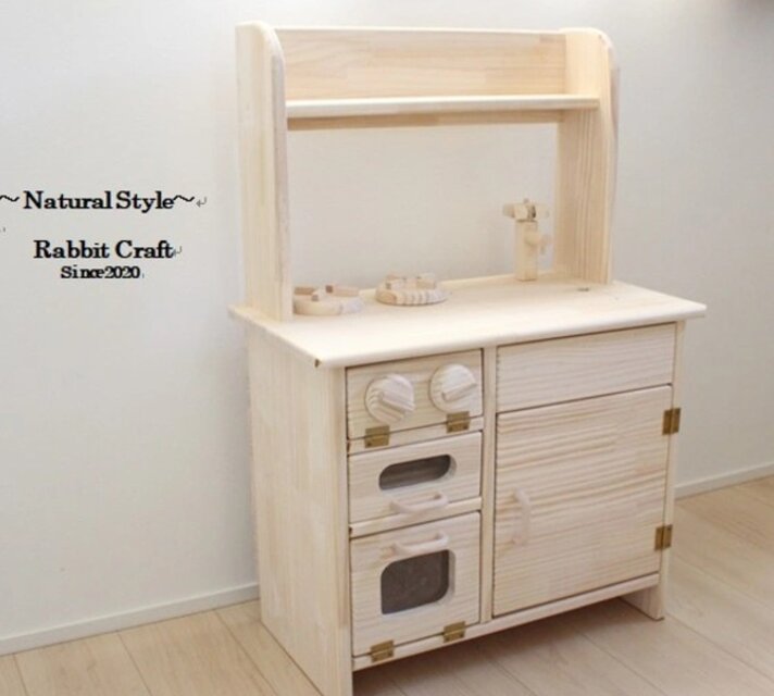 小さなパーツに至るまで65個のパーツ全てを手作りに拘ったあたたかな雰囲気の子供用キッチンになります♪