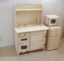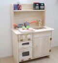 本製品はシンク部分以外は全てパイン材を使用しますので木目の整った天然パイン材の美しさ、高級感、手触りをより一層実感いただける「おままごとキッチン」に改良しております(シンク部分のみホワイトウッドを使用させていただきます)。