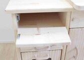 お子様の安全性を考慮し無塗装となっており、ビス止めの穴にも全て穴埋め加工しております。エッジ部分は全て、面取り加工を行い丸みを帯びさせることで、取り扱い上の安全性を向上させ、可愛らしい印象になるよう仕上げております。