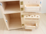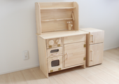 お子様の想像力の向上に少しでもお役立てできるよう、冷蔵庫扉部にはドリンクホルダーや卵ホルダーを手間隙かけて施工し、本物をイメージできる構造に仕上げております。