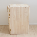 お子様の安全性を考慮し、ビス止めの穴にも全て穴埋め加工しております。エッジ部分は全て、面取り加工を行い丸みを帯びさせることで、取り扱い上の安全性を向上させ、可愛らしい印象になるよう仕上げております。
