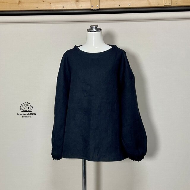 【厚手リネン】ボトルネックブラウス◆黒◆M・Ⅼ・LL(リネン100%)