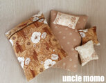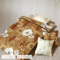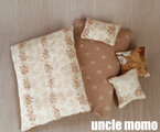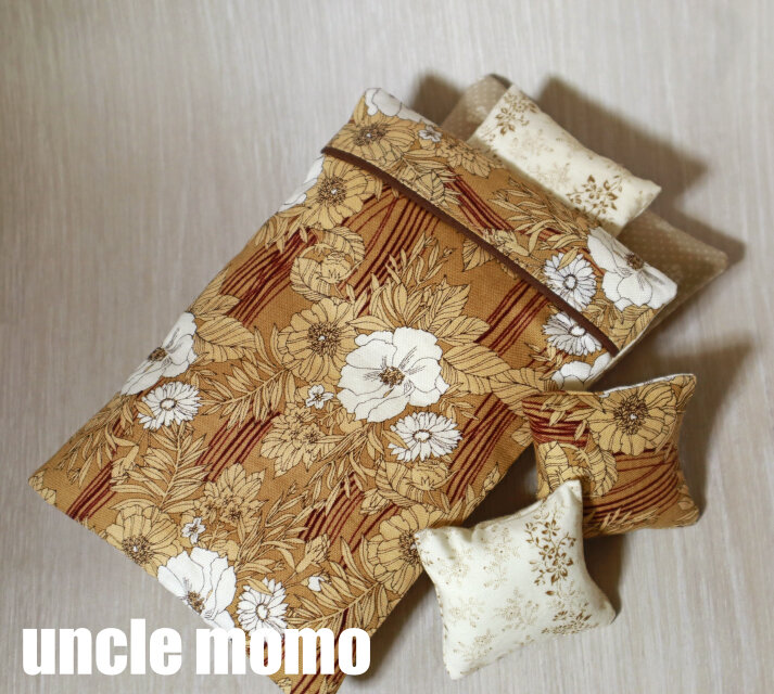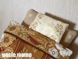 ドール用枕&掛・敷布団セット シングル用(厚)カフェオレ(ベージュブラウン) 1/12ミニチュア・ファブリック