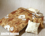 シングルサイズの掛布団と敷布団、枕1個、ピロークッション2個がセットになっています。