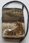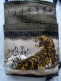 中袋には、虎と鷹の柄の羽織の裏地を付け、中綿を入れ、中ポケットを1つ付けています。