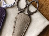・ハサミのサイズですが、バランスよくおさまるハサミをいくつか選んで載せております。お手持ちのハサミに近いサイズがあれば、お使いいただけると思います。(ハサミの支点部分はフラットな物の方が収まりが良いです。)