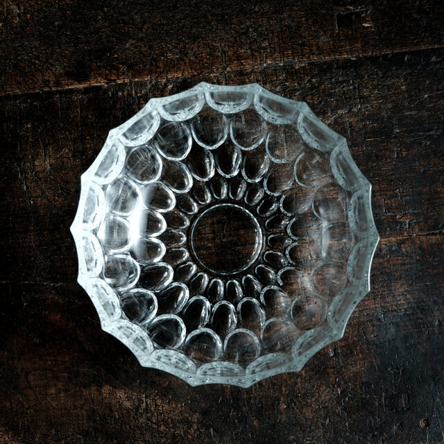 素敵な形状◆ギザギザで素敵。クリスタル・プレスガラス大鉢 古民家 古道具 昭和後期