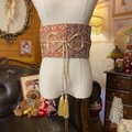 【名古屋帯リメイク サッシュベルト 飾り帯 和洋折衷 ウエストマーク ハンドメイド レトロ 古着 LL〜4L ダスティブラウン×唐草文様 | エキゾチック GOB-27】