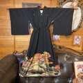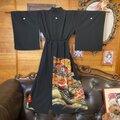 【 黒留袖 着物 リメイク ワンピース ドレス セミロング 和洋折衷 洗える 化繊 ハンドメイド レトロ 古着 鶴と黄金扇の吉祥文様 TKW-90】