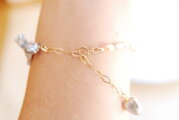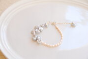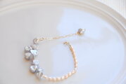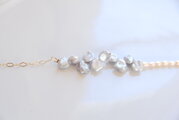 グレーのシックなケシパールと極細のライス型パールを組み合わせたブレスレットです
