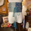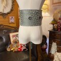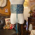 【名古屋帯リメイク サッシュベルト 飾り帯 和洋折衷 ウエストマーク ハンドメイド レトロ 古着 LL〜4L 瑠璃色の貴婦人 GOB-31】