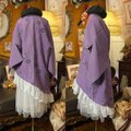 【単衣着物 2way アシンメトリー ガウン 羽織り ドレス ワンピース ハンドメイド 和洋折衷 洗える 化繊 リメイク 名古屋帯サッシュベルト レトロ 古着 葡萄色×縦縞・小花柄 KD-86】
