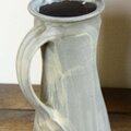●表面が乾いてきたらハンドル(持ち手)をボディに接着します。(接着には粘土をクリーム状に溶いたものを使用)