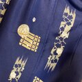 ベースカラーは、夜空や深海を思わせる濃紺。非常に落ち着いたシックな色合いでありながら、柄のベージュやオフホワイトが華やかさを添え、上品で知的な印象を与えます。静かで知的なオーラを放つ。濃紺と古典文様が、大人の女性が持つ深みとエレガンスを最大限に引き出してくれるよう。
