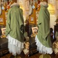 ベースカラーは、深みのあるモスグリーン。自然の木々や森を思わせる落ち着いた色合いは、知的で洗練された印象を与え、幅広い年齢層に馴染みます。このガウンを纏えば、あなたはまるで森の妖精。落ち着いたグリーンの色無地と純白のレースフリルが、大人の甘さと洗練された個性を両立させます。