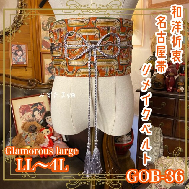 名古屋帯リメイク サッシュベルト 飾り帯 和洋折衷 ウエストマーク LL〜4L ダイナミック・スパイラル GOB-36