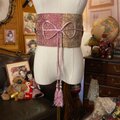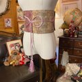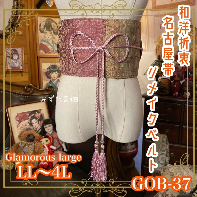 【名古屋帯リメイク サッシュベルト 飾り帯 和洋折衷 ウエストマーク ハンドメイド レトロ 古着 LL〜4L 二面性の美 GOB-37】