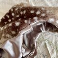とても可愛いバンビのバッグが届きました。中布までセンスが行き届いていて素敵です。 人形作家さんのつくるバッグは、バッグそのものがお人形のようです。可愛いです。