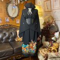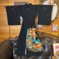 【 黒留袖 単衣 着物 リメイク ワンピース セミロング ドレス 和洋折衷 洗える 化繊 ハンドメイド レトロ 古着 鳳凰と波頭の吉祥文様 TKW-91】