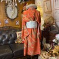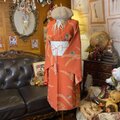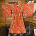 【 着物リメイク ワンピース ドレス 洗える 化繊 帯サッシュベルト 和洋折衷 レトロ 古着 ハンドメイド 温もりのテラコッタ KW-1193】
