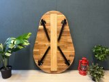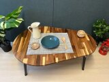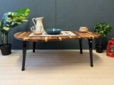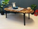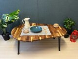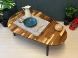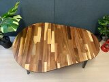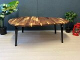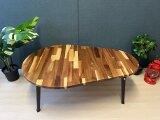 ◎まだらな木目が美しいアカシア材を天板に使用した、ダルマ形のローテーブルです。