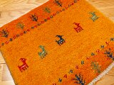 ●ペルシャ ギャッベ ミニマット 横43.5x42cm 花柄 ヤギ 黄金色 T7865G